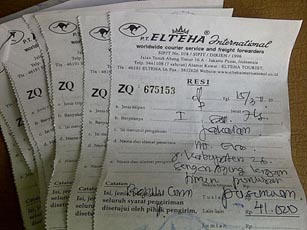 FOTO KUMPULAN BEBERAPA KERTAS RESI BUKTI PENGIRIMAN PRODUK